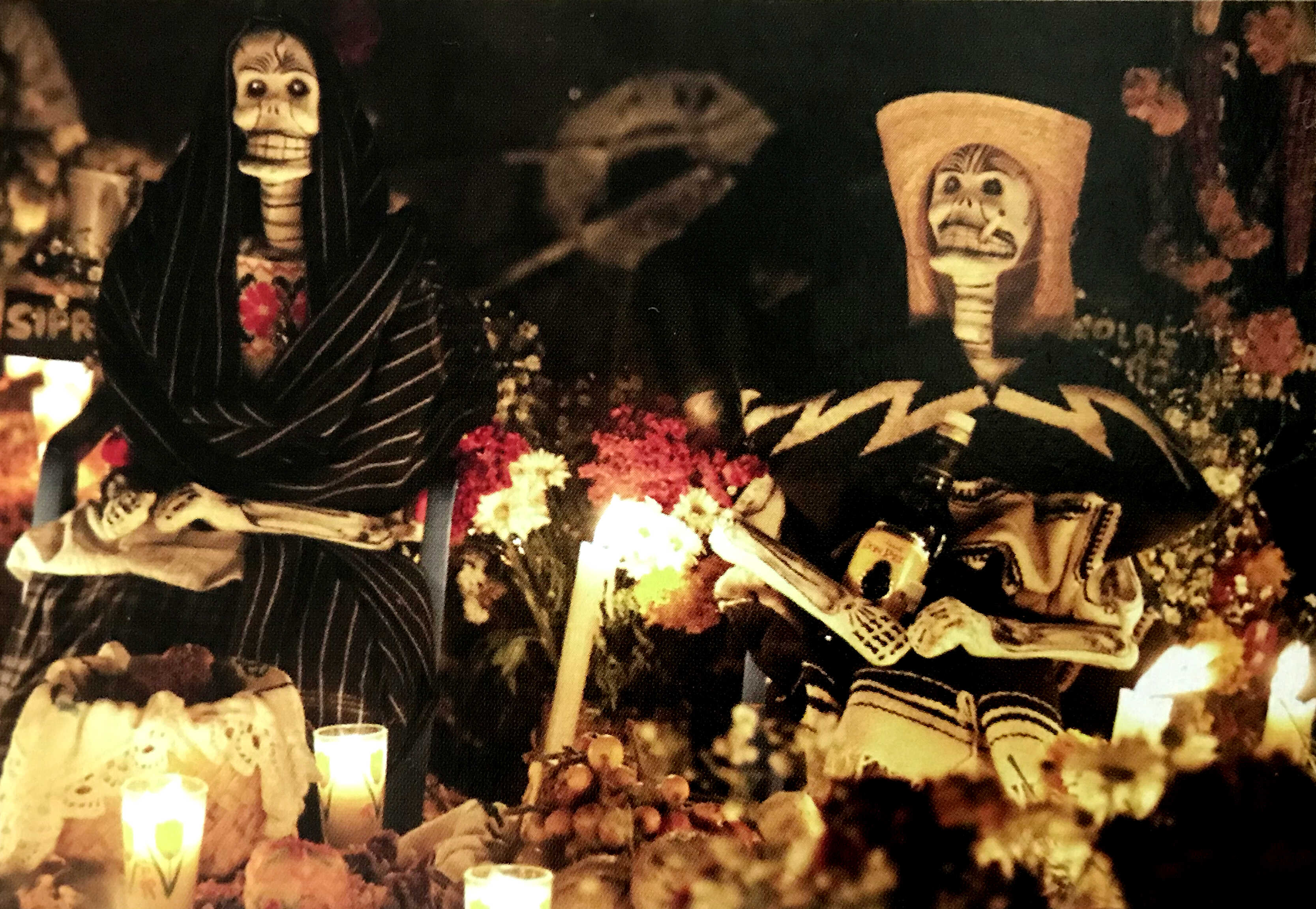 墨西哥亡灵日多以骸骨及骷髅头的图腾装饰,同时不忘送礼给祖先,当作祭祀。