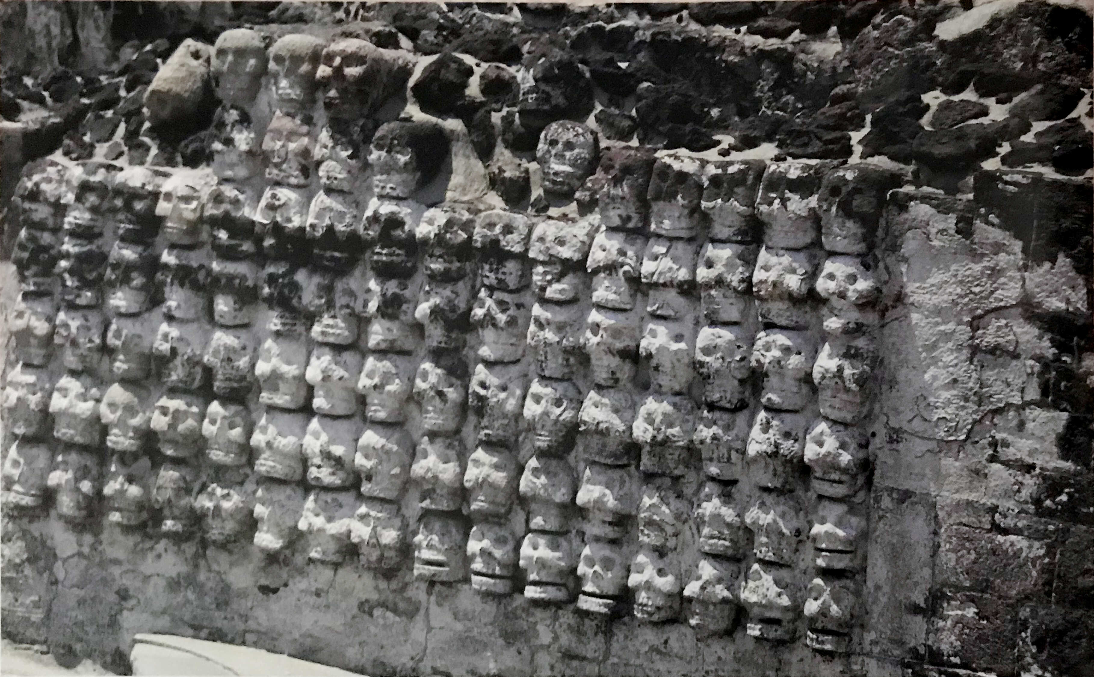 阿兹特克族把俘虏来的士兵头骨排列在架子上,如墨西哥大城铁诺克提兰的大神庙前的骷髅墙,藉此炫耀战功。